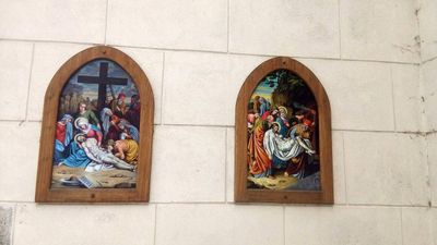 13. zastavení (vlevo) na křížové cestě v Jindřichově Hradci