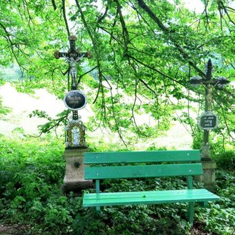 Dva kříže na rozcestí k Stupskému rybníku východně od Třeboně, pamětní kříž v obci Třeboň, okres Jindřichův Hradec
