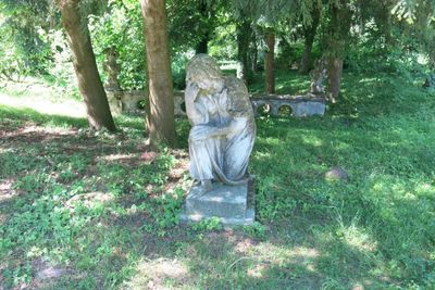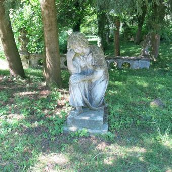 Socha klečící ženy v parku za zámkem v Chlumu u Třeboně, statue in Chlum u Třeboně, Czech Republic