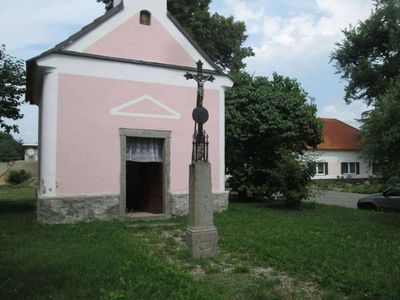 Kříž před kaplí v Sudoměři, pamětní kříž v obci Čejetice, okres Strakonice