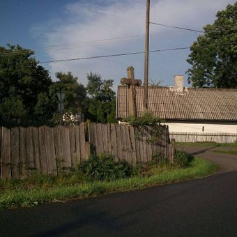 Kříž v Radkově za plotem, pamětní kříž v obci Radkov, okres Tábor