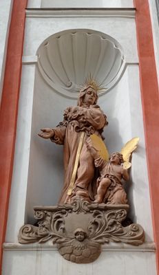 Statue of Saint Monica on the Church of the Nativity of the Virgin Mary in Tábor