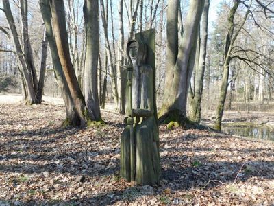 Dřevěná socha v zámeckém parku v Lukavci, statue in Lukavec, Czech Republic