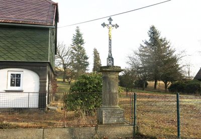 Kříž u domu 375 v části Leopoldka, pamětní kříž v obci Velký Šenov, okres Děčín