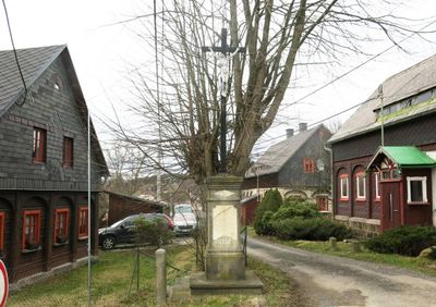 Kříž u domu 434 v Království, pamětní kříž v obci Šluknov, okres Děčín