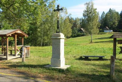 Kříž na rozcestí ke koupališti v Jetřichovicích, pamětní kříž v obci Jetřichovice, okres Děčín