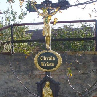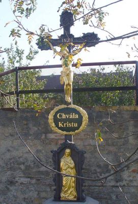 Boží muka před kostelem Nejsvětější Trojice v Dobřichově