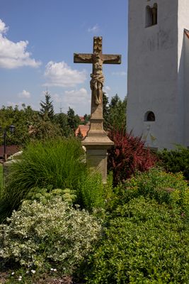 Kříž před kostelem svatého Václava v Lukovanech, pamětní kříž v obci Lukovany, okres Brno-venkov