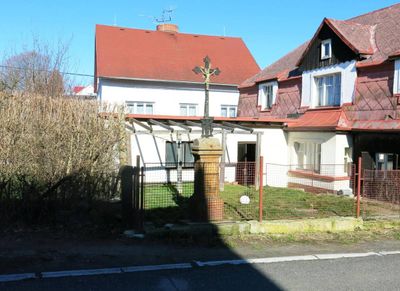 Kříž v zahradě domu Bezručova 62/11 v Rumburku, pamětní kříž v obci Rumburk, okres Děčín