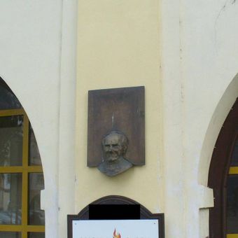 Pamětní deska Vincence Morstadta, pamětní deska s reliéfní bustou na Morstadtově domě Karlovo náměstí čp. 76 v Kolíně