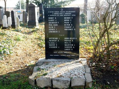 Památník obyvatelům ghetta v Lodži na novém židovském hřbitově na Olšanech