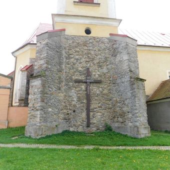 Misijní kříž na kostele v Mladých Bříštích, pamětní kříž v obci Mladé Bříště, okres Pelhřimov