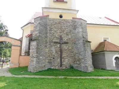 Kříž před kostelem sv. Jana Křtitele v Mladých Břištích