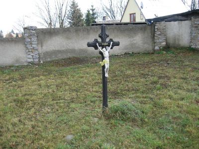 Kříž u západní strany kostela Narození Panny Marie v Jamarticích