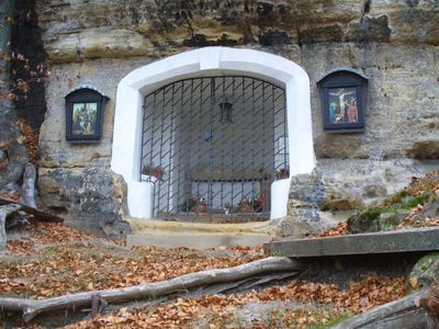 Skalní kaplička Olivetská kaple u Křížové cesty v Kamenickém Šenově