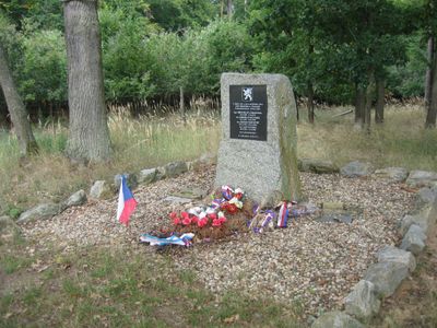 Památník výsadkového oddílu SPELTER na okraji lesa severně od Kramolína