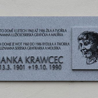 Pamětní deska Hanky Krawcec na domě 471 na náměstí Edvarda Beneše ve Varnsdorfu, pamětní deska v obci Varnsdorf, okres Děčín