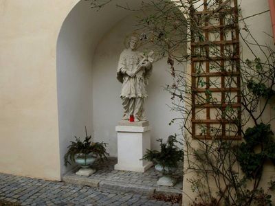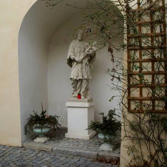 Socha svatého Jana Nepomuckého na dvoře fary u svatého Mikuláše ve Znojmě, statue in Znojmo, Czech Republic