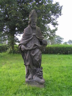 Socha svatého Prokopa u kostela ve Velkém Valtinově, statue in Velký Valtinov, Czech Republic