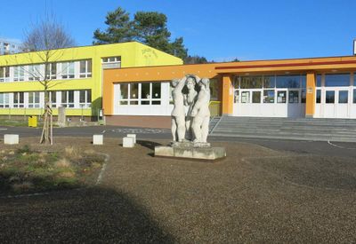 Socha Zlatá brána u školy Na Podlesí v Kadani, statue in Kadaň, Czech Republic