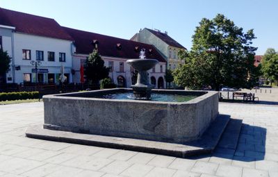 Fountain, stone square-shaped fountain in the main square in Bechyně, Czech Republic