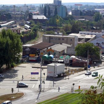 Railway bridge over Hybešova street in Brno