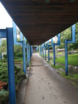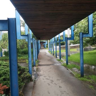 Blue Bower, Kovová konstrukce zakrývající chodník na Pražské třídě v Českých Budějovicích