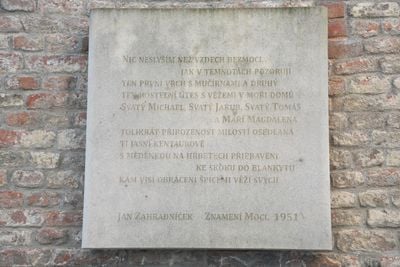 Deska s citátem básně Jana Zahradníčka, deska v Uličce Václava Havla v Brně