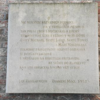 Deska s citátem básně Ivana Blatného
