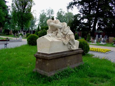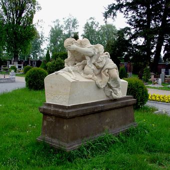 Socha Plačící ženy na hřbitově v Jaroměři