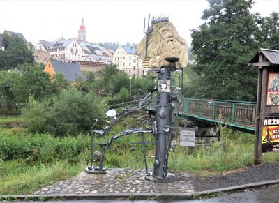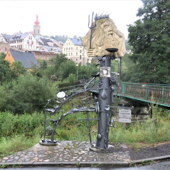 Kovová plastika Kovářská DNA u domu Poštovní 36 v Bečově nad Teplou