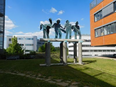 Plastika Dotyky a distance v kampusu Masarykovy university v Bohunicích