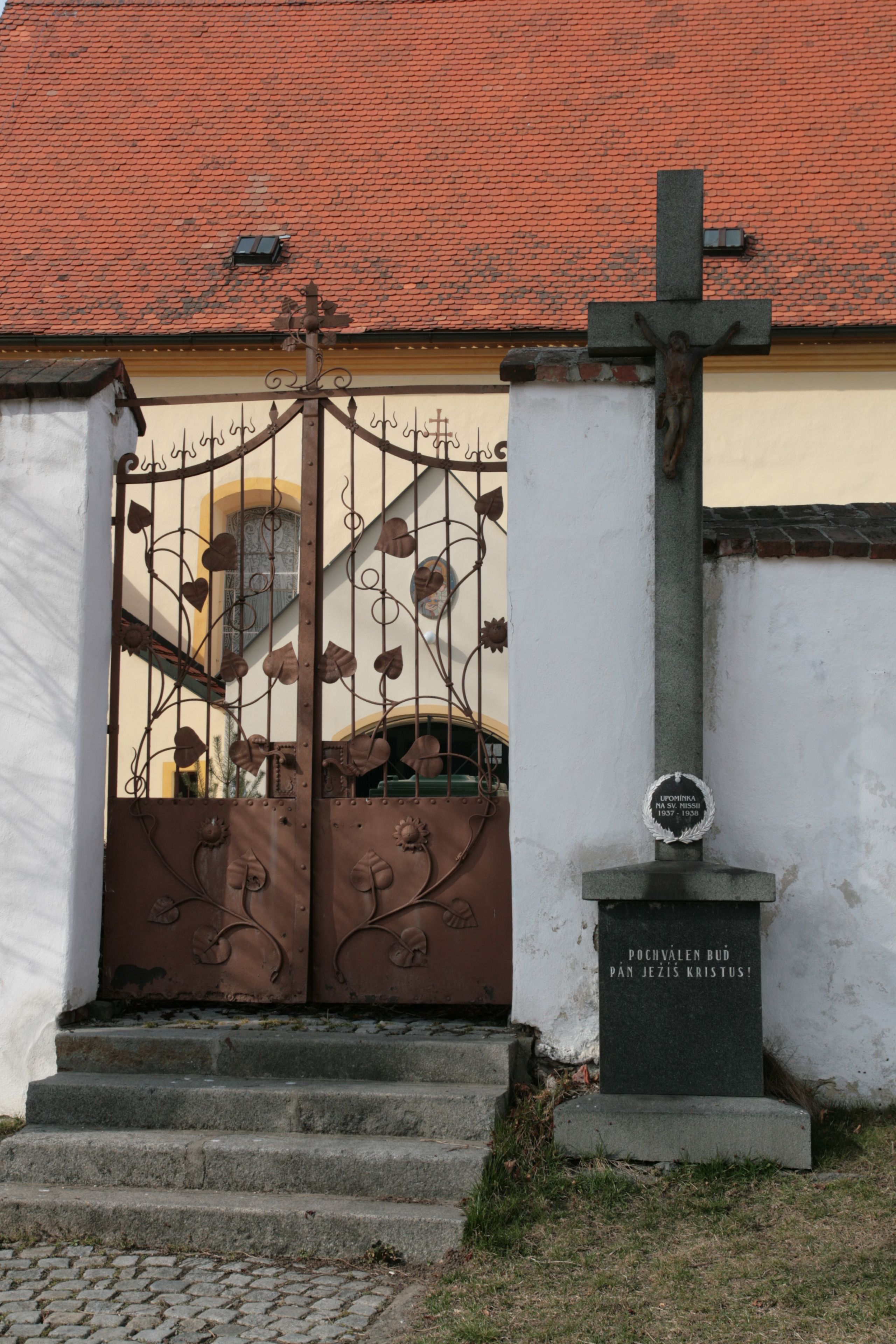 Kříž u kostela v Ledenicích, kříž u vstupní brány na hřbitov