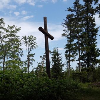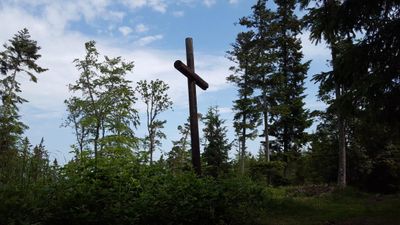 Dřevěný kříž na vrchu Velká Baba v Brdech