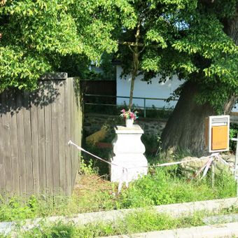 Boží muka u rybníčku za kostelem Nanebevzetí v Mašťově