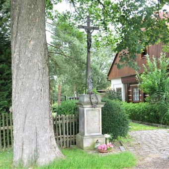 Kříž u Mandavy za zahradou domu 2 v Dolních Křečanech