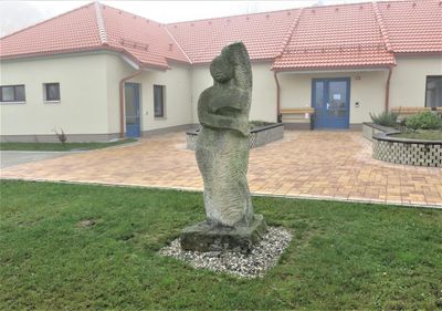 Socha před školkou v Dolním Slivně, statue in Dolní Slivno, Czech Republic