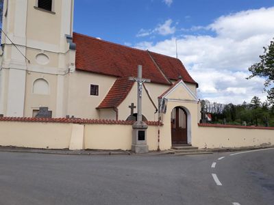 Kříž u kostela v Dolních Slověnicích, pamětní kříž v okrese České Budějovice