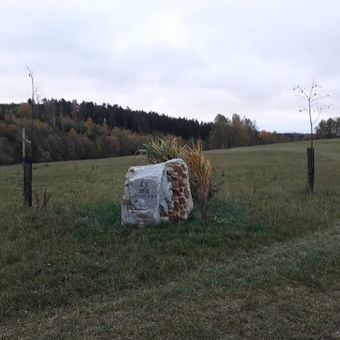 Památný kámen s datem výstavby rybníka Žebrák u Hvožďan