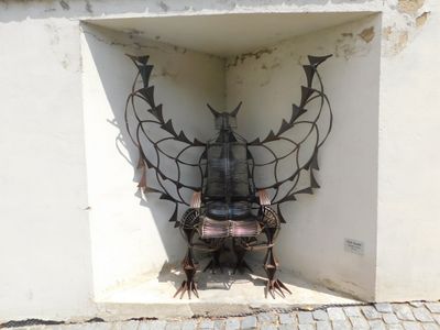 Dračí trůn, kovová plastika před Templem v Mladé Boleslavi