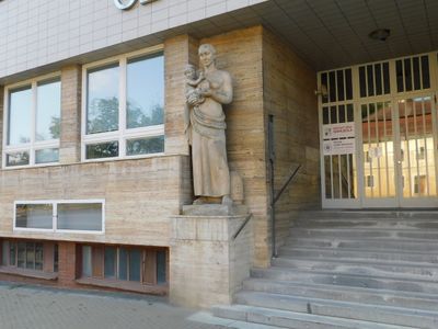 Plastika před školou v Komenského ulici v Napajedlech