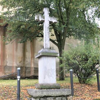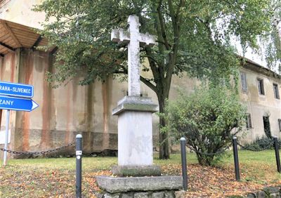 Křížový kámen poblíž domu 223 ve Zbuzanech
