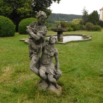 Socha Hermes a Afrodita v zámeckém parku ve Valči