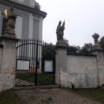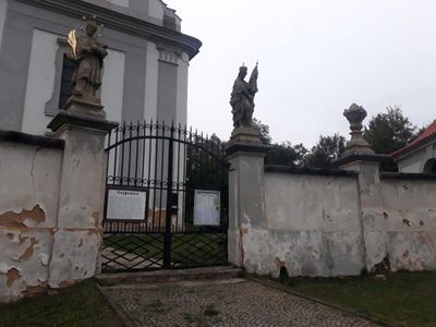 Socha svatého Jana Nepomuckého u brány ke kostelu ve Vejprnicích