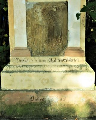 Kamenná sloupová plastika u kaple v Ladech