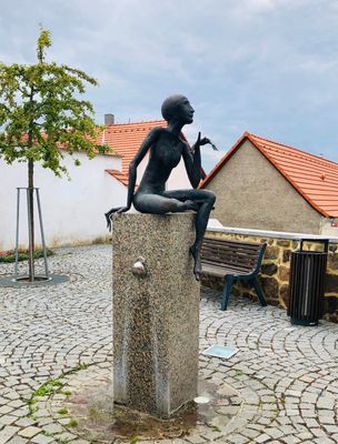 Socha ženy na pítku v Masné ulici v Rakovníku, statue in Rakovník, Czech Republic