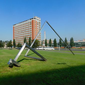 Kovová plastika v Universitním parku ve Zlíně
