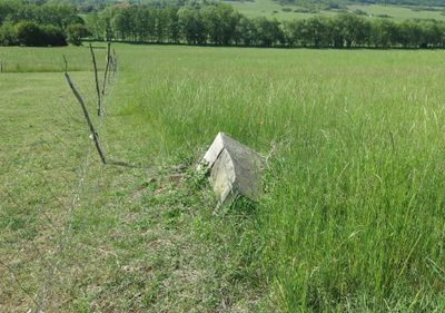 Rozvalený podstavec s ulomeným křížem u kostela v osadě Želina