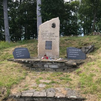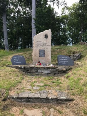 Pomníček umělců Ondrúška a Táborského u cesty na zříceninu Obřany