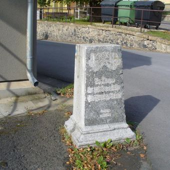 Podstavec s ulomeným kovovým křížem u silnice z Malíče